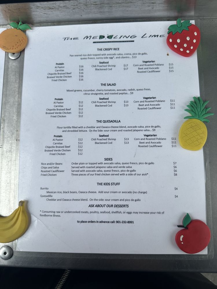 Introducing The Meddling Lime, a Mexican food truck located at 6200 SE Milwaukie Ave in Portland, OR. This vibrant eatery offers a plethora of options such as vegan and vegetarian choices, wheelchair accessibility, and even dog-friendly outdoor seating. With a menu boasting pork belly crispy rice burritos, flavorful chicken fingers, and mouthwatering tacos, it's no wonder customers like Holly T. and Michelle P. rave about the exceptional service and delicious food. The gluten-free options and variety of protein choices, including delectable seafood options, make this spot a must-visit for all dietary preferences. Don't miss out on their chimichangas or the welcoming atmosphere that keeps patrons like Anne R. and Nick M. coming back for more. Experience the flavors of The Meddling Lime and immerse yourself in their Southwest-inspired dishes that are sure to leave you satisfied.